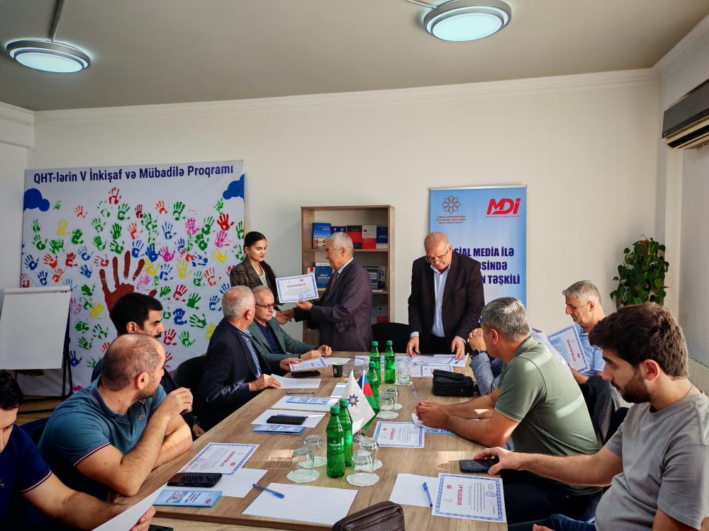 Təlimlərin yekunda iştirakçılara təlimlərdə fəal iştirakalrına görə sertifikatlar təqdim olunub.