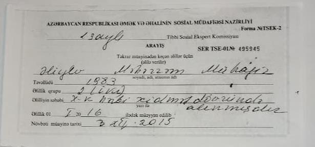 Hazırda keçmiş hərbçi “VTEK”, TƏBİB və poliklinika arasında qalıb. Hər yer eyni cavabı verir: “Xüsusi şəraitdə işləyə bilər.” Amma ölkədə elə “xüsusi şəraitdə” iş yerləri hardadır? Bu qeydlə heç bir müəssisə onu işə götürmür.