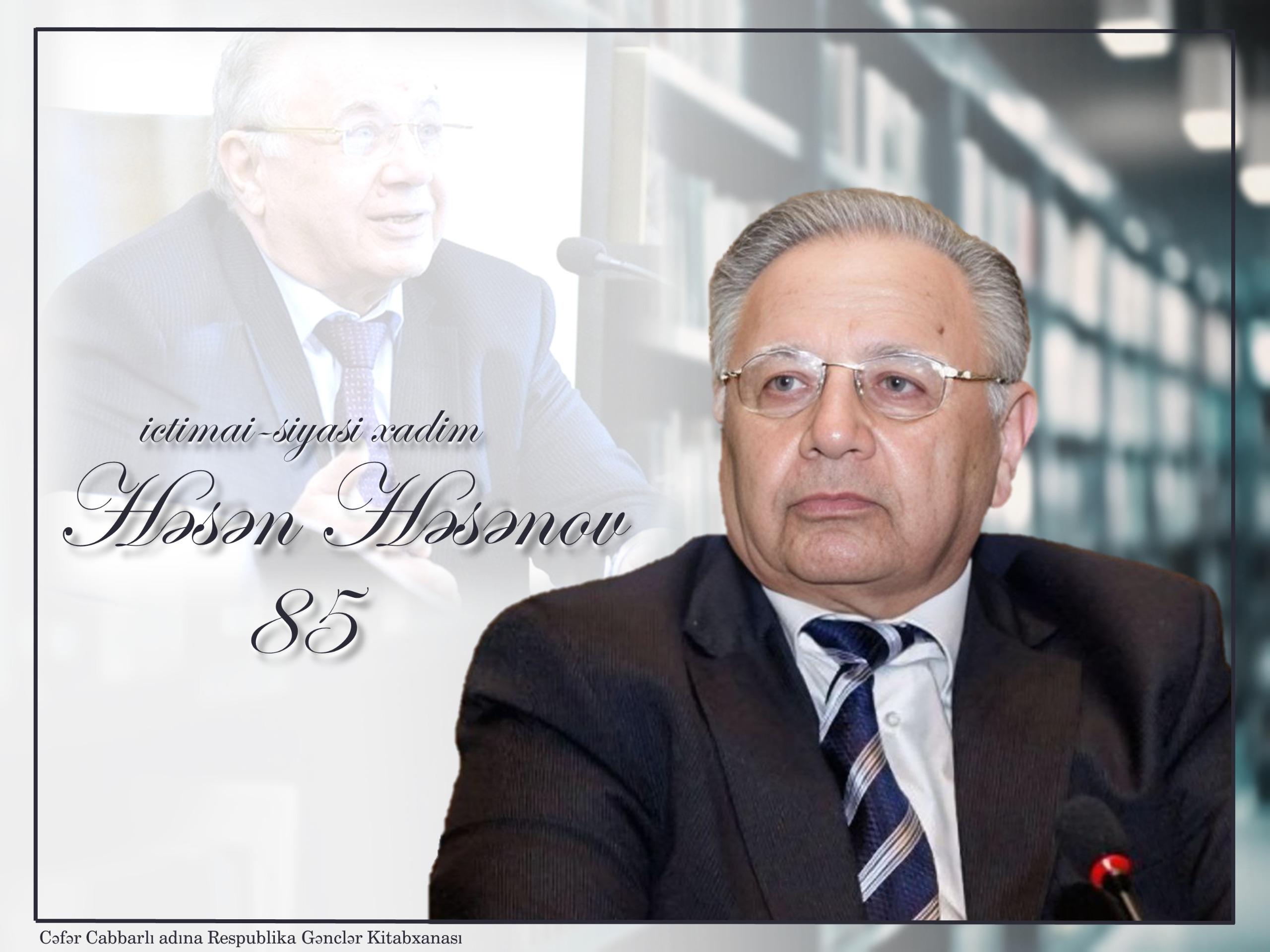 Bu gün Azərbaycanın görkəmli ictimai-siyasi və dövlət xadimi, diplomat, tarix elmləri doktoru Həsən Həsənovun anadan olmasının 85 illik yubileyi tamam olur. Bu münasibətlə Cəfər Cabbarlı adına Respublika Gənclər Kitabxanasında Həsən Həsənovun mənalı həyat yolundan və ictimai-siyasi fəaliyyətindən bəhs edən məlumat bülleteni və videomaterial hazırlanıb.
