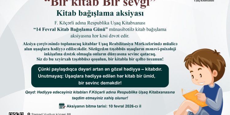 F. Köçərli adına Respublika Uşaq Kitabxanası 14 Fevral – Kitab Bağışlama Günü münasibətilə “Bir kitapb, bir sevgi” adlı kitab bağışlama aksiyasına start verir.