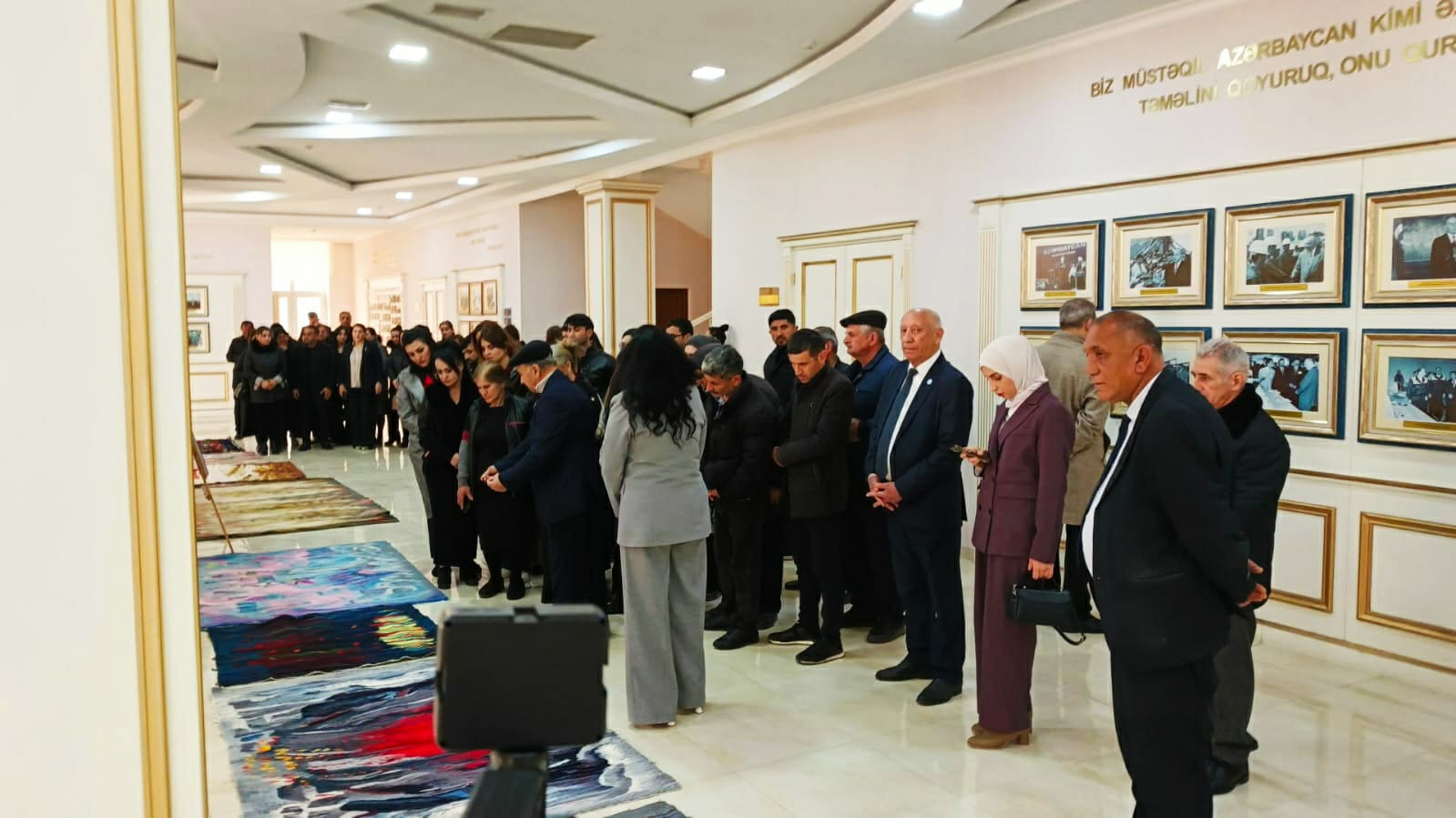 Əməkdar rəssam Adil Şıxəliyev çıxışında təşkilatçılara minnətdarlığını bildirib. O qeyd edib ki, qobelen sənəti onun üçün yalnız sənət deyil, həm də tarixi yaddaşın qorunması vasitəsidir. Ulu Öndərin obrazını ilmələrdə əks etdirmək onun üçün böyük şərəfdir. Rəssam vurğulayıb ki, hər bir əsər aylarla, bəzən illərlə işlənir və nəticədə yaranan əsər sadəcə tablo deyil, ruhun, hisslərin canlı təcəssümüdür.