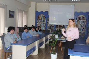 Tədbirdə kitabxana əməkdaşı uşaqları “Uşaq hüquqları haqqında” Azərbaycan Respublikasının Qanunu ilə tanış edib, onlara bulinq haqqında geniş məlumat və mövzu ilə əlaqədar resursları əhatə edən prezentasiya təqdim edib.