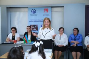 Tədbirdə təlimçi Gülşən Cəfərova uşaqlara və valdeyinlərə inklüziv təhsil haqqında məlumat verib.