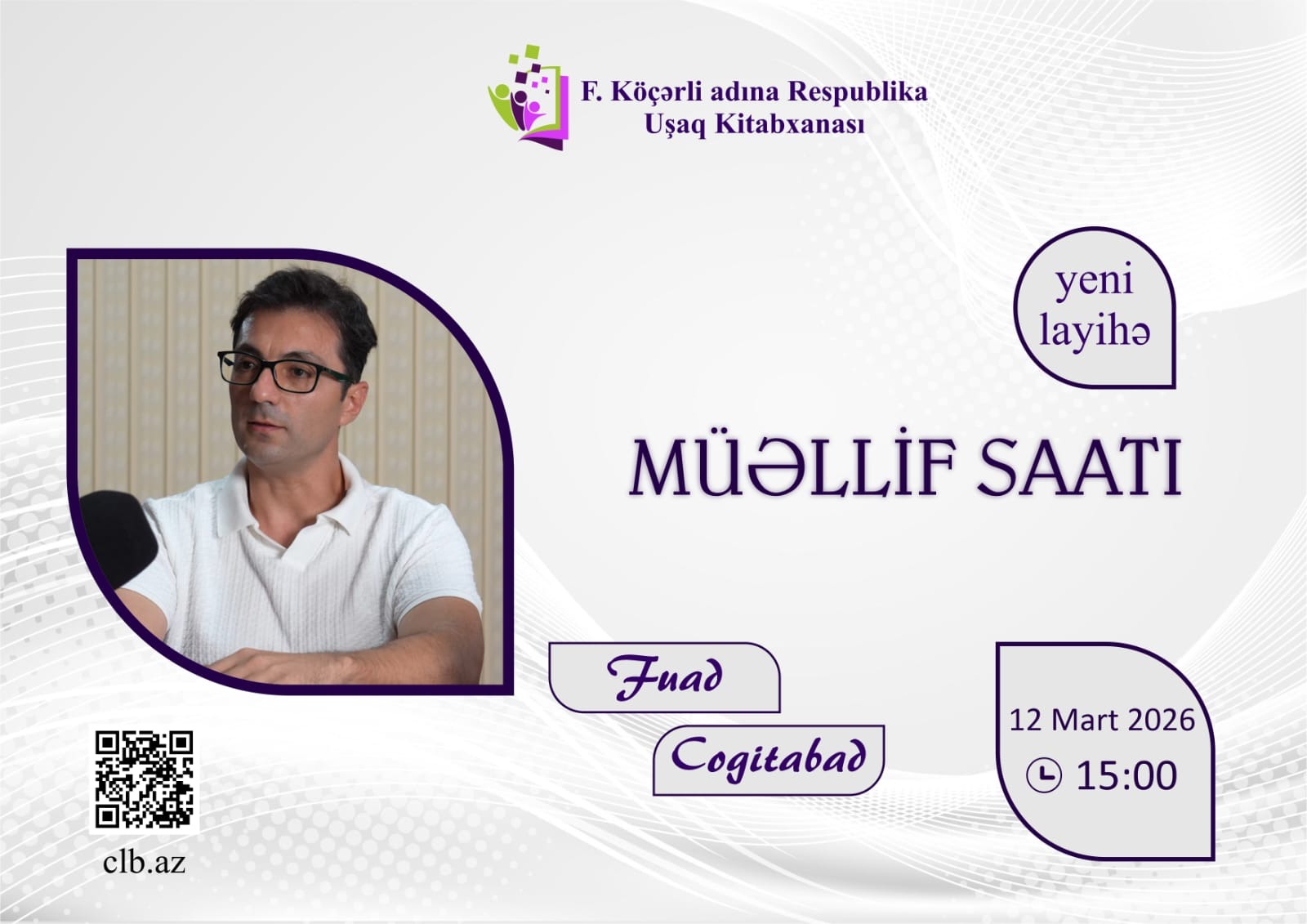 12 mart 2026-cı il tarixində F.Köçərli adına Respublika Uşaq Kitabxanasında “Müəllif saatı” layihəsi çərçivəsində gənc yazar Fuad Cogitabadın “Aradığın şey sənsən” adlı kitabının təqdimatı keçirilib. Tədbirdə Bakı Dövlət Universitetinin Şərqşünaslıq, Kitabxanaçılıq və İnformasiya fakültələrinin tələbələri, eləcə də kitabxana əməkdaşları iştirak ediblər.