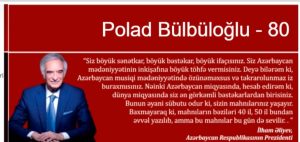 Avropa.info xəbər verir ki, bu gün  Azərbaycan bəstəkarı və müğənnisi, Azərbaycanın sabiq mədəniyyət naziri, Azərbaycanın Rusiyadakı fövqəladə və səlahiyyətli sabiq səfiri, TÜRKSOY-un sabiq sədri, Azərbaycanın, Türkmənistanın, Özbəkistanının və Başqırdıstanın xalq artisti, Dağıstan Respublikasının əməkdar incəsənət xadimi, millət vəkili Polad Bülbüloğlunun 80 illik yubileyi tamam olur. Bu münasibətlə Cəfər Cabbarlı adına Respublika Gənclər Kitabxanasında Polad Bülbüloğlunun zəngin mədəni, ictimai, siyasi fəaliyyətindən bəhs edən elektron məlumat bazası hazırlanıb.