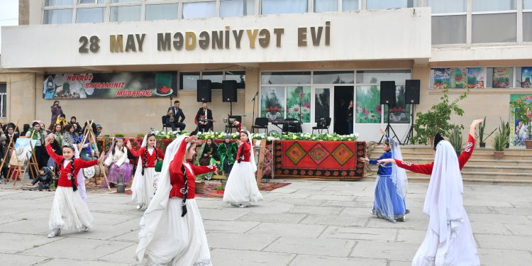 Tədbir çərçivəsində 28 May Mədəniyyət Evinin qarşısında möhtəşəm Novruz tonqalı alovlandırıldı.